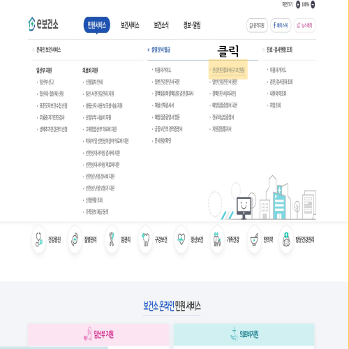 공공보건포털 e보건소에 접속하면 아래와 같은 메인 화면이 보입니다.