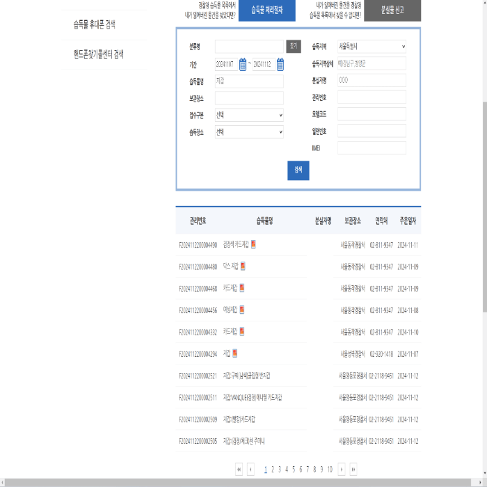 ※ 여기서 중요한 tip : 분실 당일의 기억을 떠올려보고 이동경로상(직장, 거주지 부근)에 있는 접수경찰서 게시물을 유심히 보세요. 찾을 가능성이 더 높아집니다.