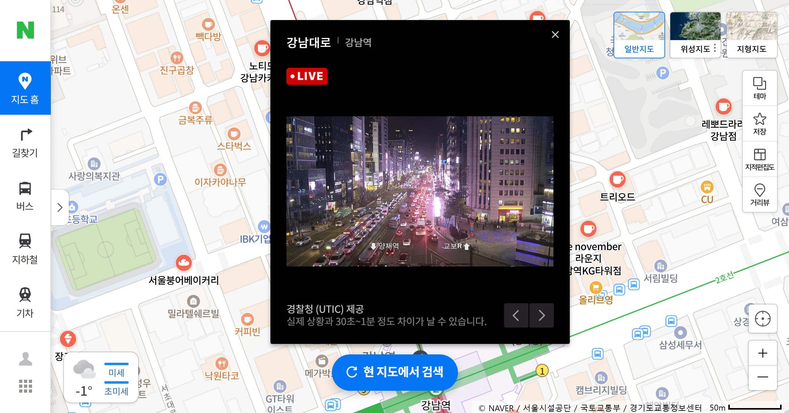 이렇게 지도에 cctv 모양이 생겼습니다. 편의상 강남역 앞에 있는 cctv 모양을 눌러보겠습니다.