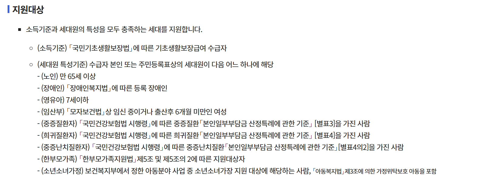 - 복지로 홈페이지(https://www.bokjiro.go.kr)를 통해 온라인으로 신청이 가능합니다.