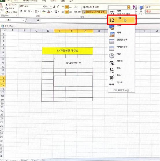 엑셀에서 숫자 길게 쓸 때, E+ 자동 변환 해결법