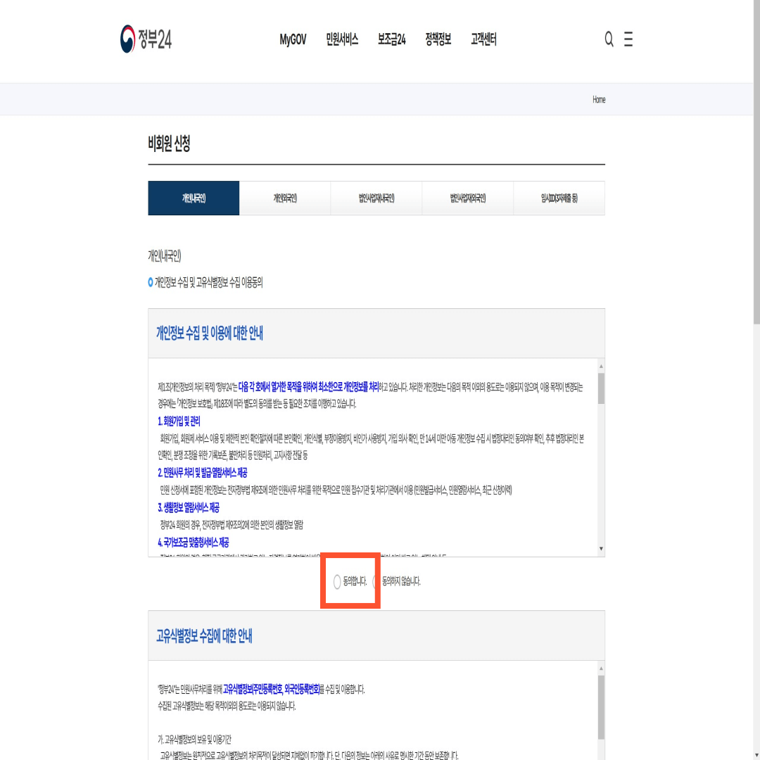 개인정보 수집 및 개인식별정보 수집 이용에 동의합니다.(여권 재발급 온라인 신청 시 필수)