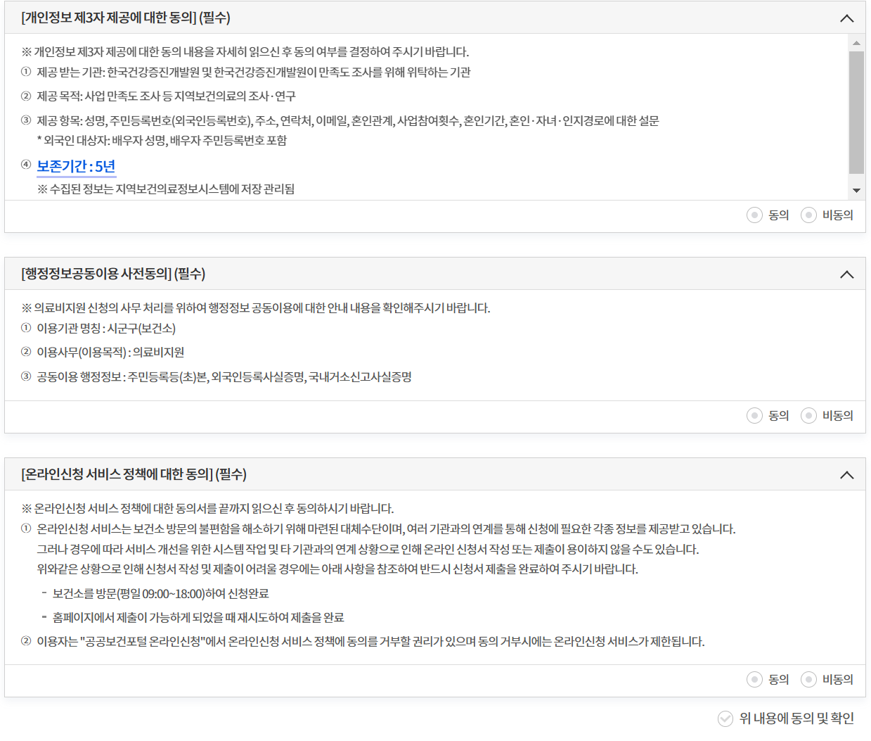 - 페이지 아랫부분에 보면 개인정보제공 동의 및 행정정보 공동 이용 사전 동의 화면이 나옵니다. 모두 동의를 선택하고 본인인증을 합니다.(미동의시 신청 불가)