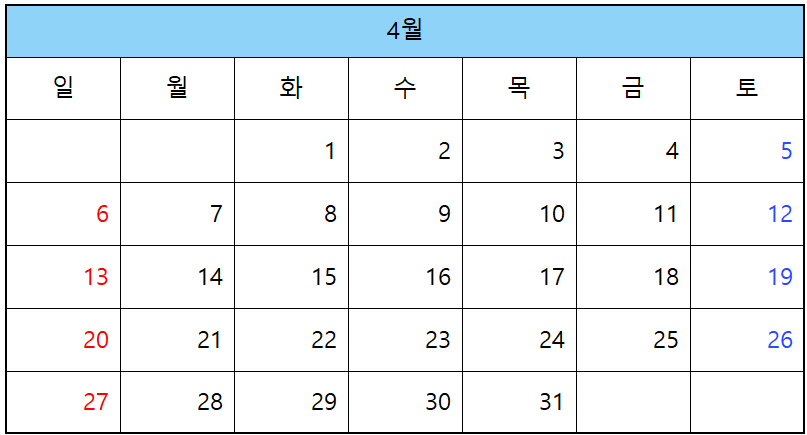 4월달에는 아쉽게도 공휴일이 없지만 5월을 위한 준비기간이라고 생각하시면 좋을 것 같습니다. 그 이유는 5월에 말씀드리겠습니다.