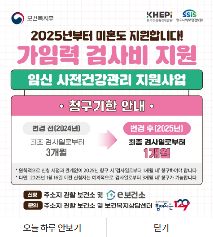 ※2024년까지는 검사 후 3개월 이내에 검사비를 청구하였지만 2025년 부터는 검사 후 1개월 이내에 검사비용을 청구하는 것으로 변경되었습니다.(이외 자세한 내용은 e보건소 홈페이지를 참고하세요)